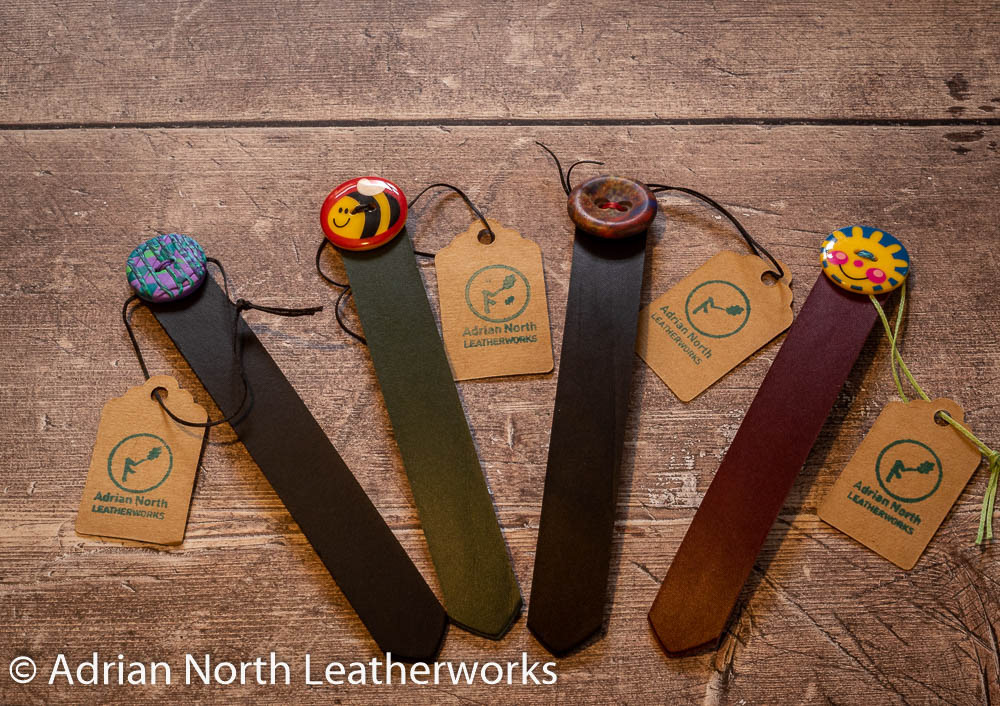 A traditional style of bookmark topped with a colourful button.